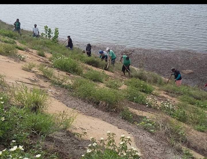 Os pescadores de Condado, através da Colônia de Pescadores do município, que tem Adriano Almeida como presidente, organizaram no sábado passado, 01, um mutirão para fazer a limpeza do balde do Açude Engenheiro Arcoverde, principal manancial da região, e de onde eles tiram o “pão” de cada dia.