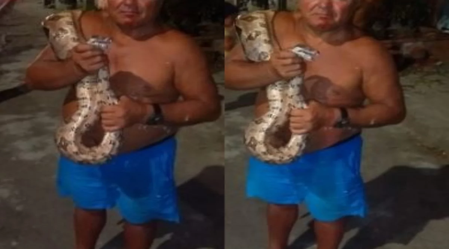 Mesmo ferido, o homem permaneceu com o animal nas mãos e a situação atraiu muitos curiosos ao local. O Batalhão Ambiental da Polícia Militar foi acionado e enviou uma viatura para o local.