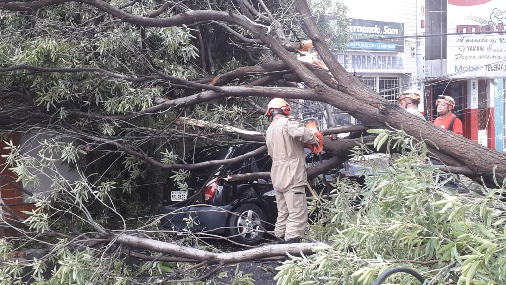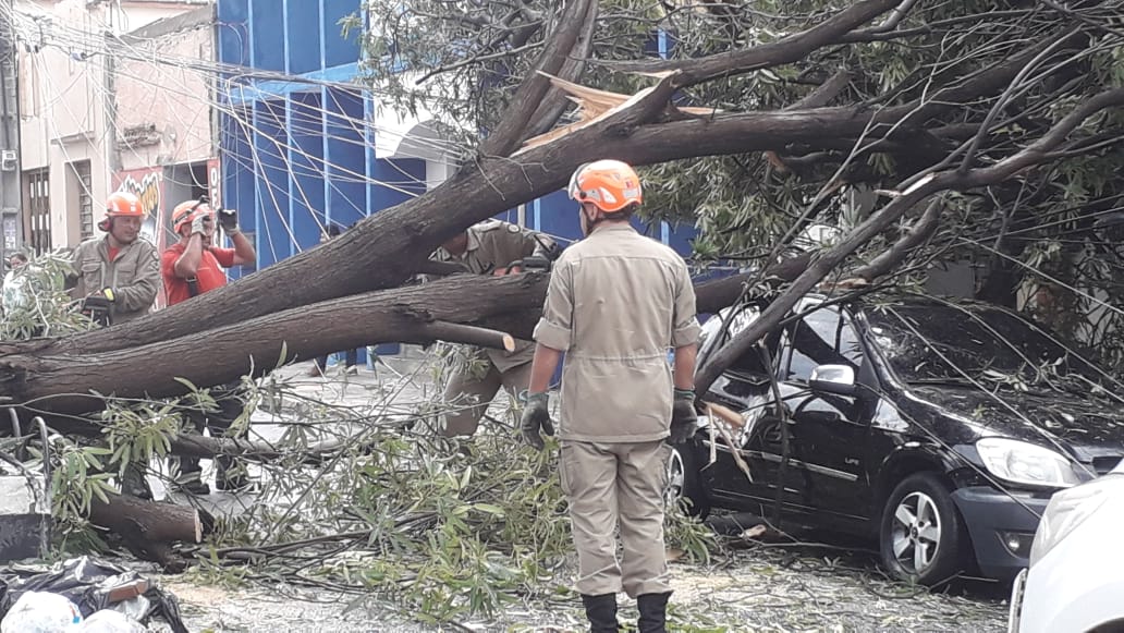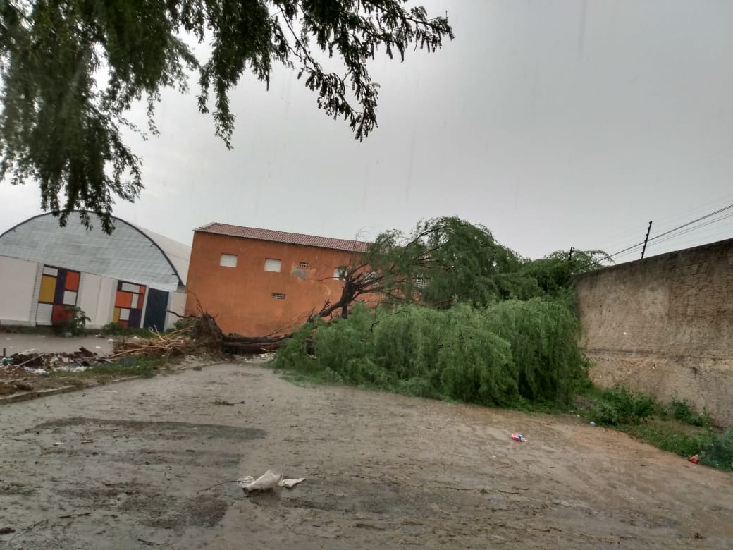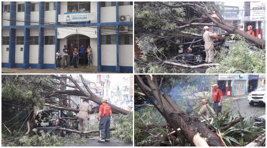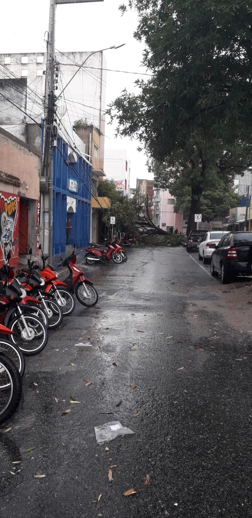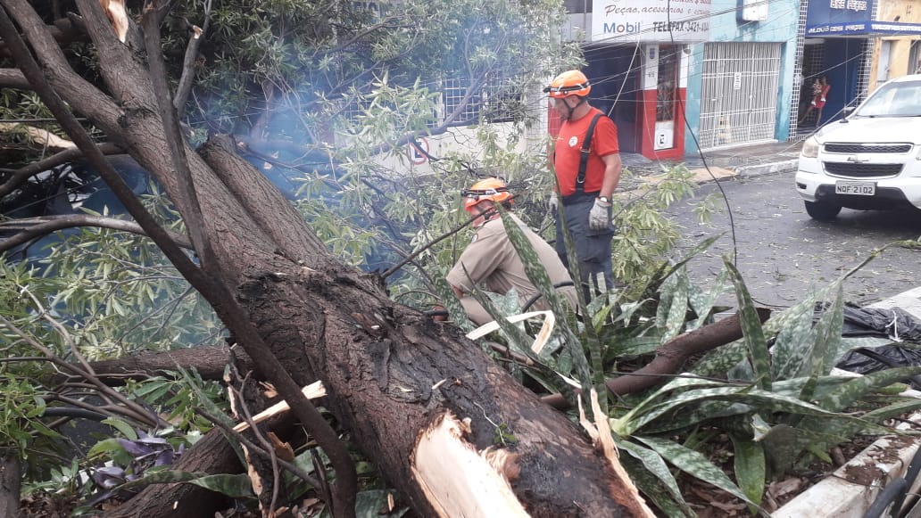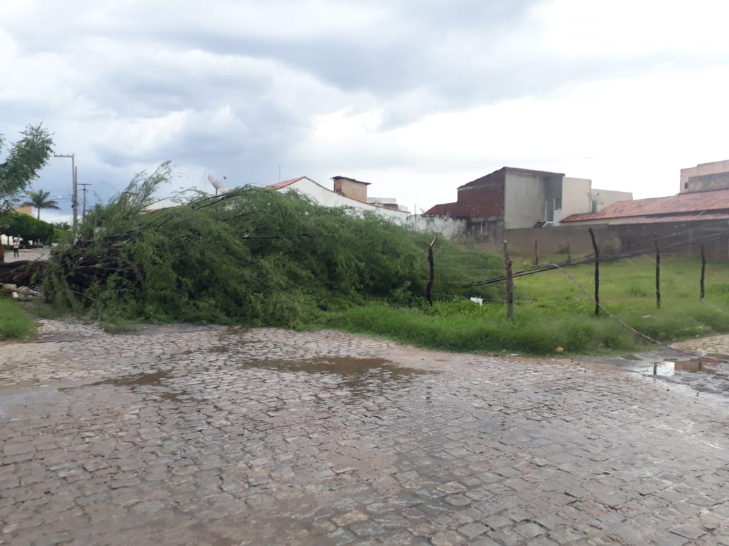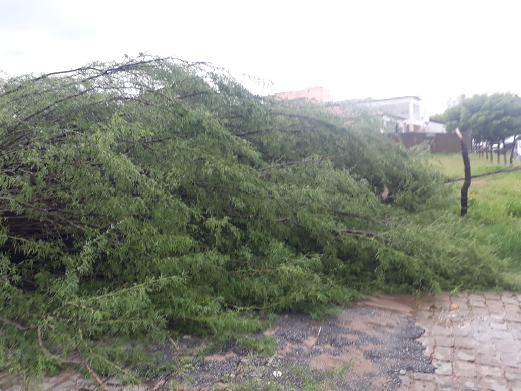 Também houve queda de árvore ao lado da Escola Estadual Monsenhor Manoel Vieira, no centro, e também próximo ao Mercadinho Leandro, no bairro Santo Antônio.