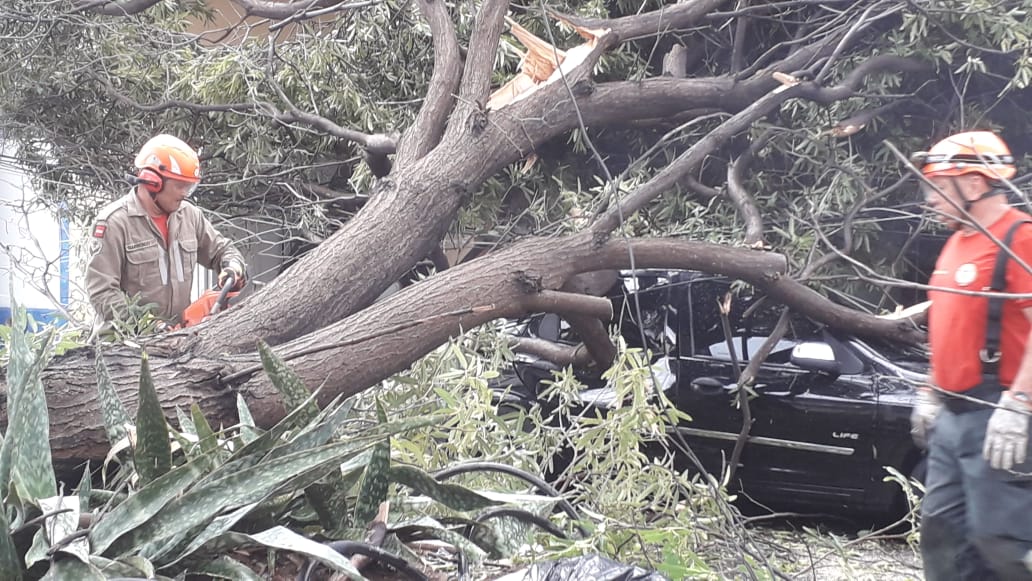 O Corpo de Bombeiros já está em campo trabalhando para resolver os casos, mas como as árvores estavam muito grandes, necessitando de podas, para retirá-las é preciso destrinchá-las com o auxílio de serra elétrica.