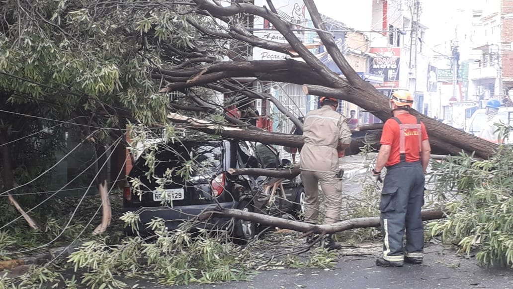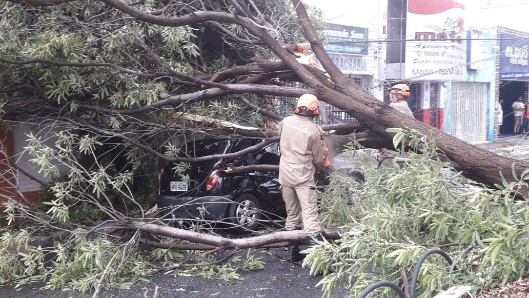 No bairro Brasília, próximo ao Edifício Mont Azul, uma grande algaroba caiu em cima da rede elétrica, deixando a área também sem energia elétrica. A queda prejudicou o trânsito no local.
