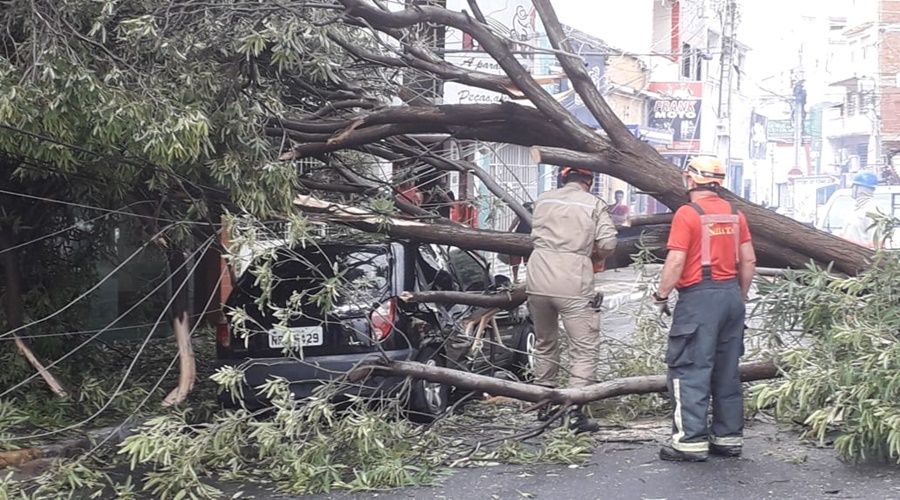 Uma placa de publicidade também caiu na entrada da cidade, na saída para Campina Grande. Os locais onde foram registradas quedas de árvores foram isolados.