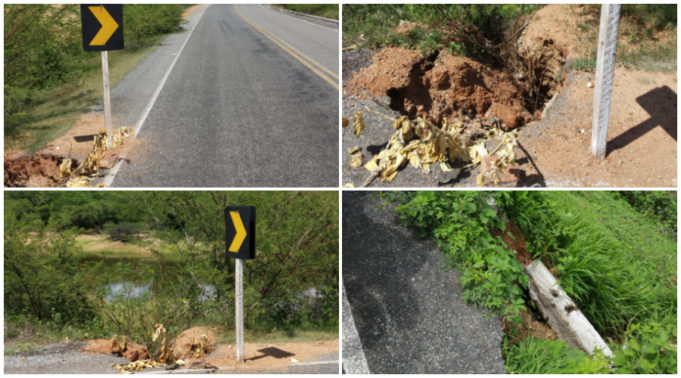 Dois açudes podem estourar e levar embora o asfalto da PB-293, entre Malta e Vista Serrana, Região Metropolitana de Patos, segundo denúncia apresentada pelo vereador de Vista Serrana Evaldo Medeiros da Silva (PCdoB).