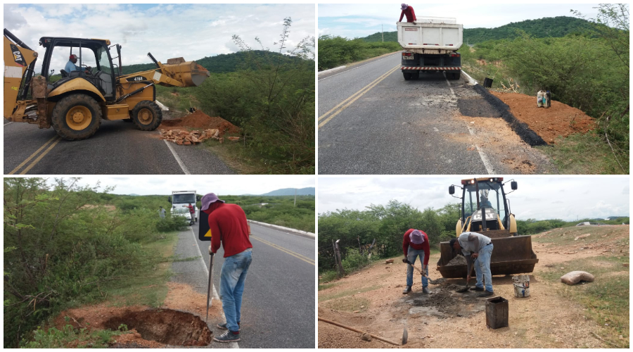 Na manhã desta quinta-feira, 13, o diretor do Departamento de Estradas de Rodagem (DER), unidade Patos, Madiel Conserva, realizou, em caráter de urgência, o reparo no asfalto da PB-293, entre Malta e Vista Serrana. “Em caráter de urgência corrigimos uma grande erosão na PB-293, entre Malta e Vista Serrana”, disse Madiel.