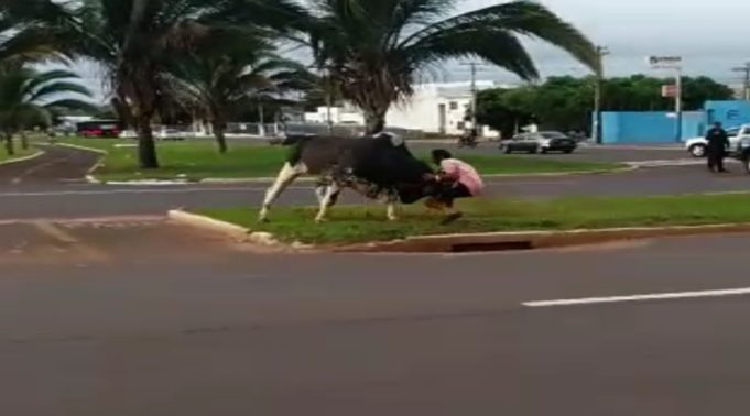 Um touro solto em uma avenida de Campo Grande causou ferimentos em duas pessoas, correu atrás de outras e causou transtornos no trânsito. Tudo aconteceu na avenida Gury Marques com a Guicurus, entre o final da noite de terça-feira (11) e a manhã desta quarta-feira (12).