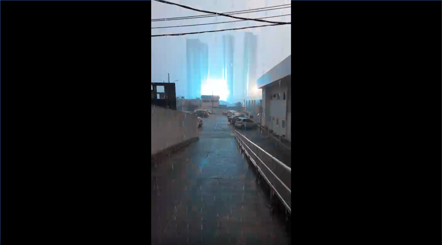Nesta quinta-feira (13), um telespectador registrou, em vídeo, o momento em que um relâmpago cai entre prédios, próximo ao Hospital Santa Isabel, em João Pessoa.