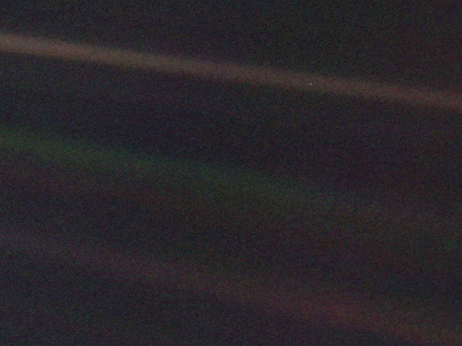 A espaçonave estava bem longe de casa. Eu pensei que seria uma boa ideia, logo depois de Saturno, fazer ela dar uma última olhada em direção de casa. Desde Saturno, a Terra apareceria muito pequena para a Voyager apanhar qualquer detalhe: nosso planeta seria apenas um ponto de luz, um “pixel” solitário. Dificilmente distinguível de muitos outros pontos de luz que a Voyager avistaria: planetas vizinhos, sóis distantes. Mas, justamente por causa dessa imprecisão de nosso mundo assim revelado… valeria a pena ter tal fotografia.