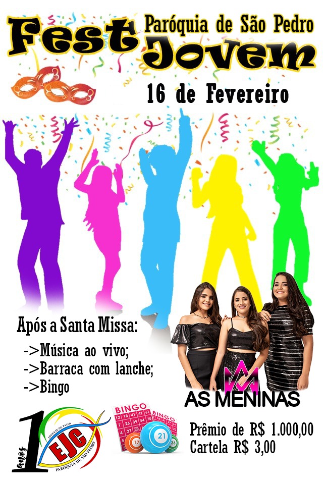 Acontece neste domingo, 16, o Fest Jovem no pátio da Paróquia de São Pedro, no bairro Jatobá, em Patos, após a santa missa que começa às 18 horas.