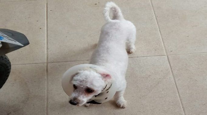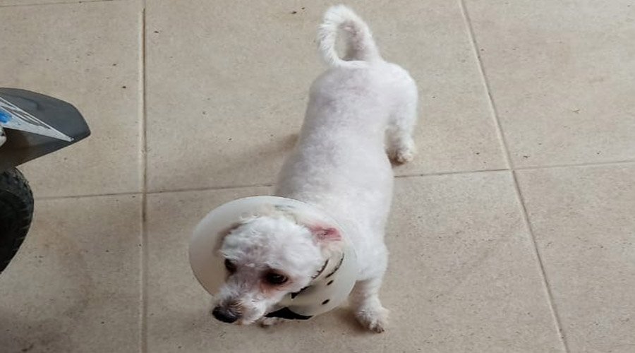 Bidu é branquinho, está tosado e com a coleira do carrapato. Qualquer informação ligue 9.9957-7545.