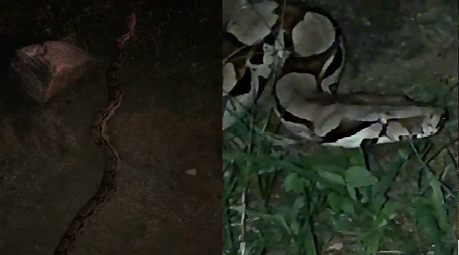 Uma cobra jiboia, medindo aproximadamente 4 metros de comprimento, foi resgatada do meio de uma estrada, no Sítio Roçado, localizado na zona rural de Conceição, na noite da última sexta-feira (14).