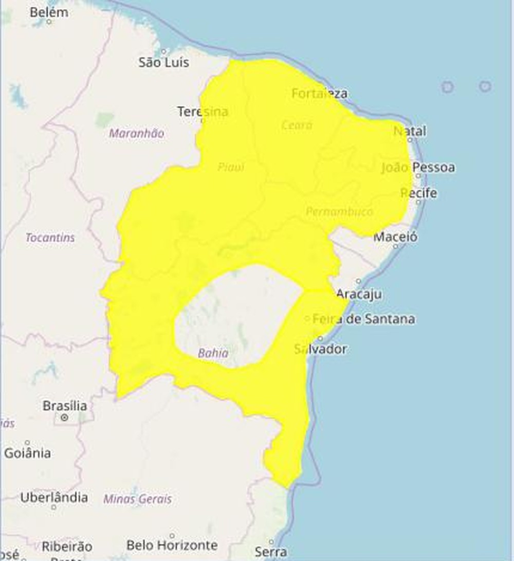 O Instituto Nacional de Meteorologia (Inmet) emitiu um alerta amarelo de perigo potencial de chuvas intensas para Campina Grande e outros 210 municípios do Agreste, Brejo, Cariri, Seridó e Sertão do estado. O aviso foi emitido às 10h15 desta quarta-feira (19) e segue até as 10h de quinta-feira (20).