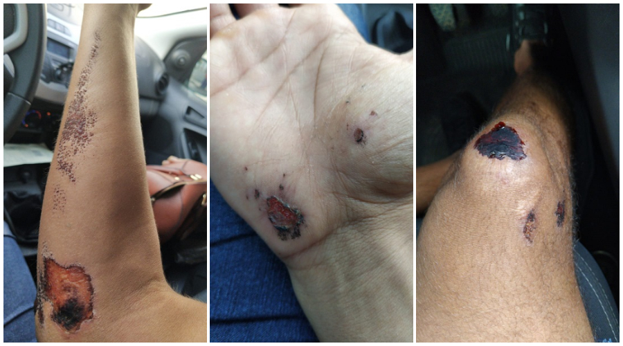 Segundo a vítima, que caiu após a colisão e sofreu escoriações pelo corpo, o motorista do veículo não prestou socorro e fugiu do local.
