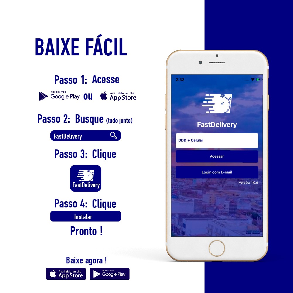 Ou se preferir vai na Google Play ou AppleStore e busca por “FastDelivery” (Tudo junto) instala.