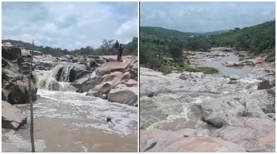 Voltou a chover forte no município de Aguiar, no Vale do Piancó, e o Rio Aguiar está de barreira a barreira, levando água para a Barragem de Mãe D’Água, em Coremas.