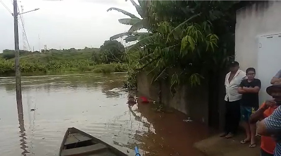 Veja vídeo do Rio Aguiar, feito na cidade de Aguiar na manhã desta segunda-feira, 24. O rio já atinge alguns setores da cidade.