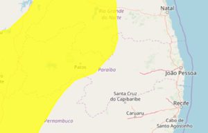 O Instituto Nacional de Meteorologia (Inmet) renovou um alerta amarelo de perigo potencial de chuvas intensas para 97 municípios do Cariri, Seridó e Sertão da Paraíba. O aviso foi emitido às 10h do domingo (23) e terminaria às 10h desta segunda-feira (24), mas foi estendido para o mesmo horário da terça-feira (25).