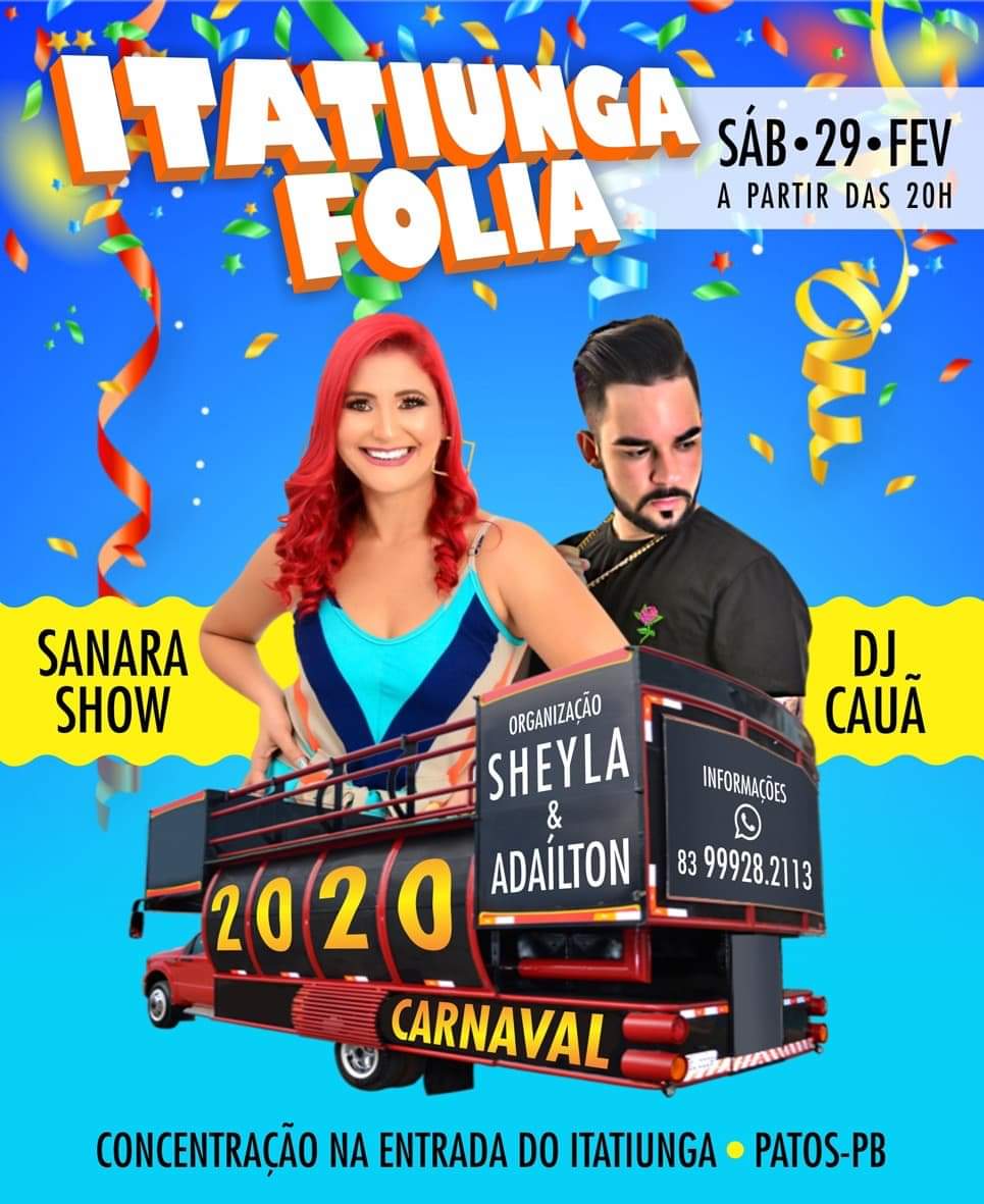 Acontece a partir das 20 horas deste sábado, 28, a terceira edição do Itatiunga Folia, o Carnaval do bairro Itatiunga, zona oeste de Patos.
