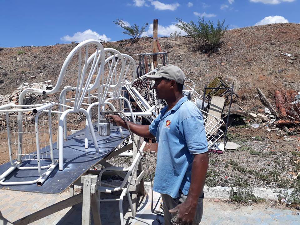 Na Rua Severina Dantas, nº 43, na Vila Mariana, em Patos, o serralheiro José Geraldo é conhecido por “dar vida nova” às cadeiras de ferro. “Cadeira que a gente acha que não serve mais se transforma nas mãos dele. Ele tem talento pro negócio”, disse um cliente.