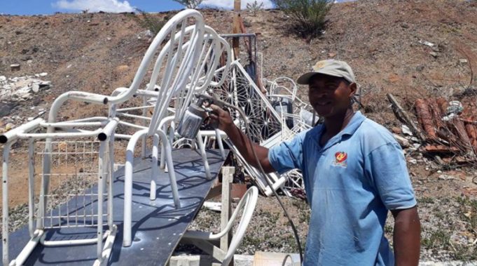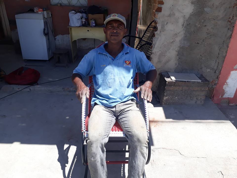 José Geraldo já pegou muitas cadeiras velhas de ferro jogadas fora e as transformou em cadeiras novas, impressionando a todos pelo seu trabalho.