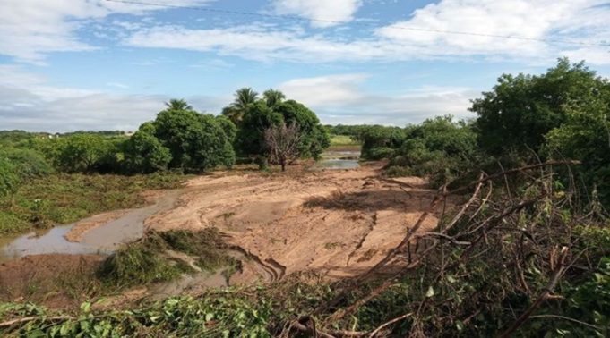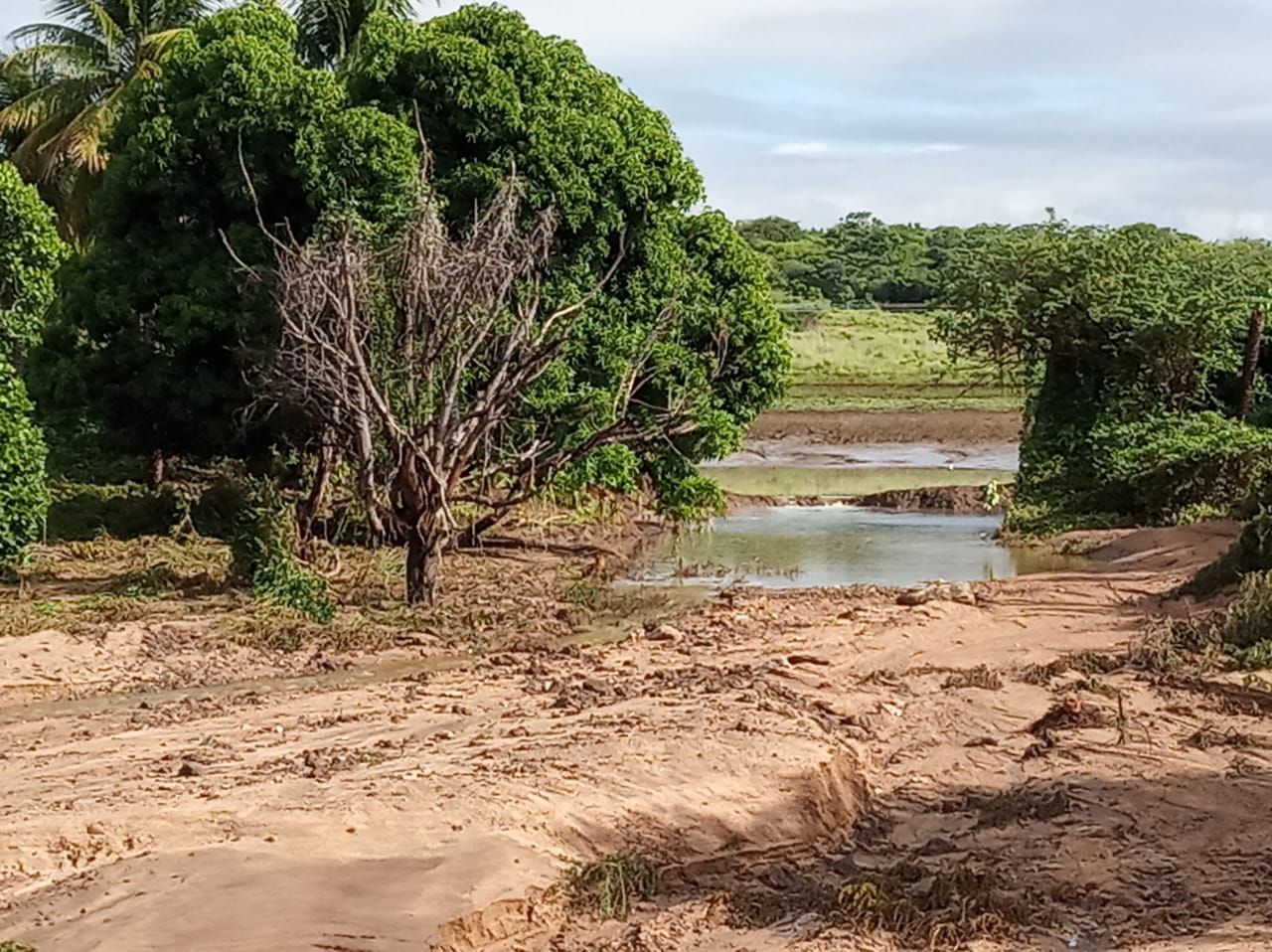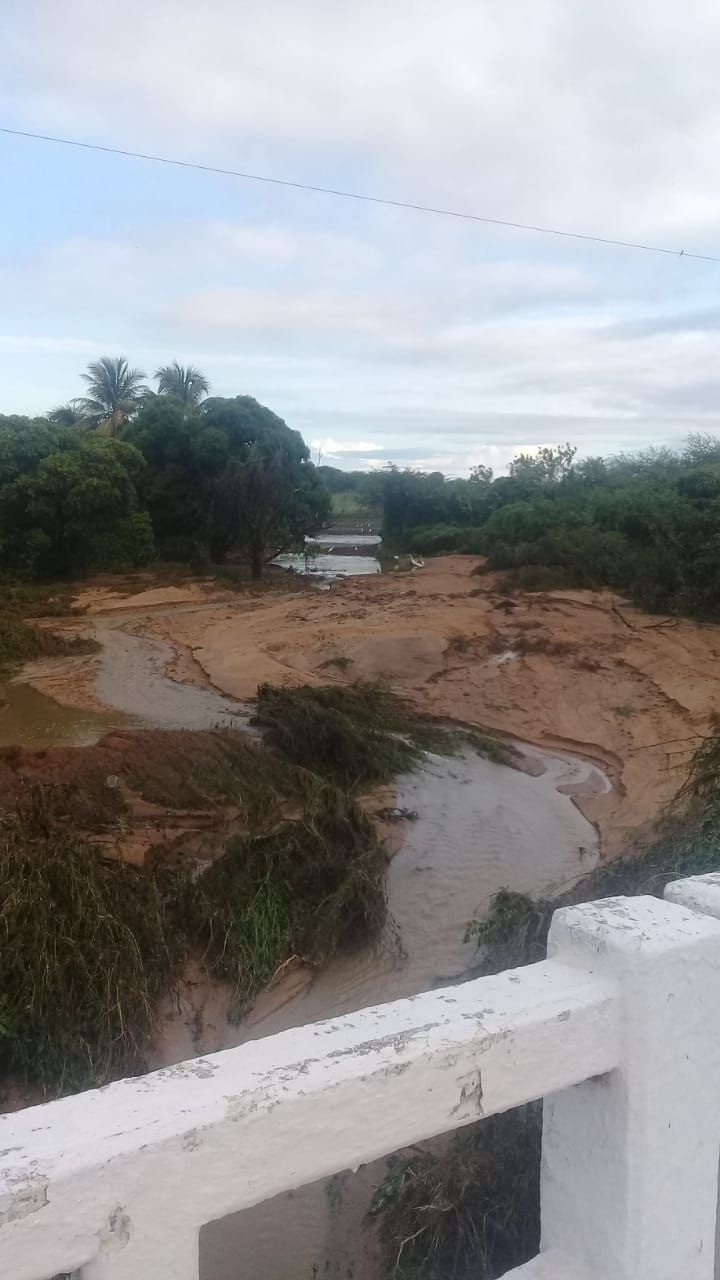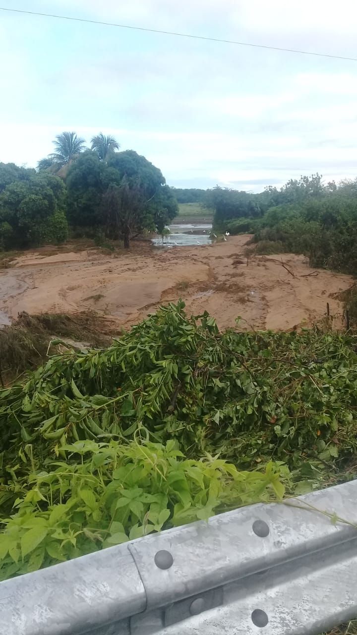 O açude fica às margens da BR-361, e fica a 8 km da cidade de Santa Terezinha. Água do açude lavou a pista, mas felizmente não houve acidente no local.