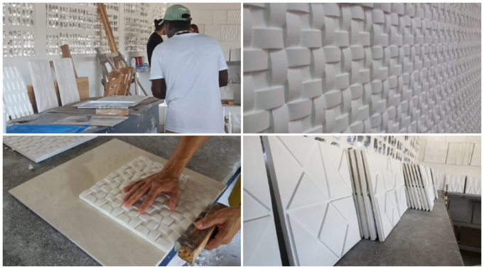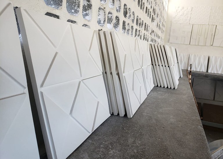 As peças de gesso 3D são feitas em vários formatos: dunas, xadrez, colmeia, estrela, floral, meia-lua, dentre outros modelos. Os reeducandos também fabricam jarros para plantas. O secretário da Administração Penitenciária (Seap), Sérgio Fonseca de Souza, também acompanha com atenção especial esse e os demais projetos de reinserção social.