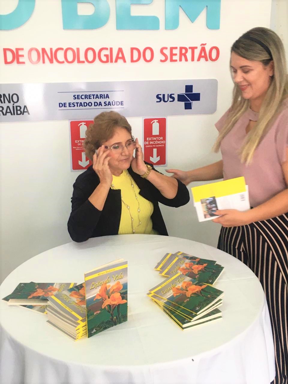 “No Hospital do Bem em cada frasco de quimioterapia ou tratamento não tem apenas remédio, tem esperança, fé, otimismo e cura e aqui comemoramos a vida, a possibilidade de superação, enfim, acolhemos pessoas com um diagnóstico de câncer e junto com elas buscamos a cura e revalidamos a vida”, disse a oncologista Nayarah Castro, na manhã desta quarta-feira (04), durante evento de lançamento do livro ‘Lições da Vida’. A autora da obra, a professora aposentada Miriam Medeiros dos Santos, de 65 anos, foi paciente do Hospital e ano passado recebeu o diagnóstico de cura de um câncer de mama. O lançamento do livro, que também faz referência a atuação do Hospital e acolhimento de sua equipe, aconteceu no hall da unidade com a presença de pacientes, acompanhantes, funcionários, familiares da escritora, além de integrantes do grupo ‘Amigas Viva a Vida’ e se transformou numa cerimônia emocionante, cujos depoimentos validaram a importância do Hospital do Bem para os pacientes oncológicos do sertão paraibano.