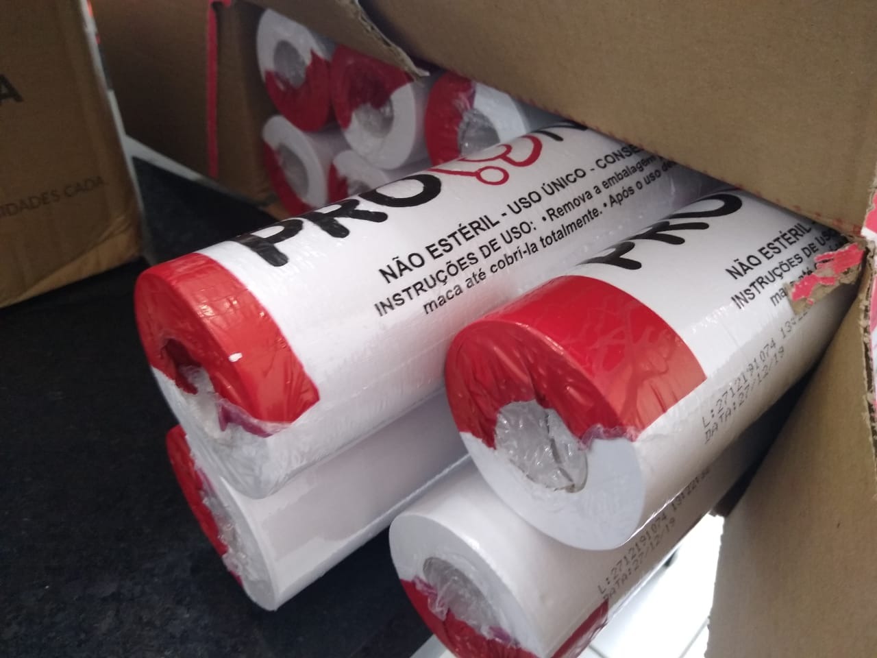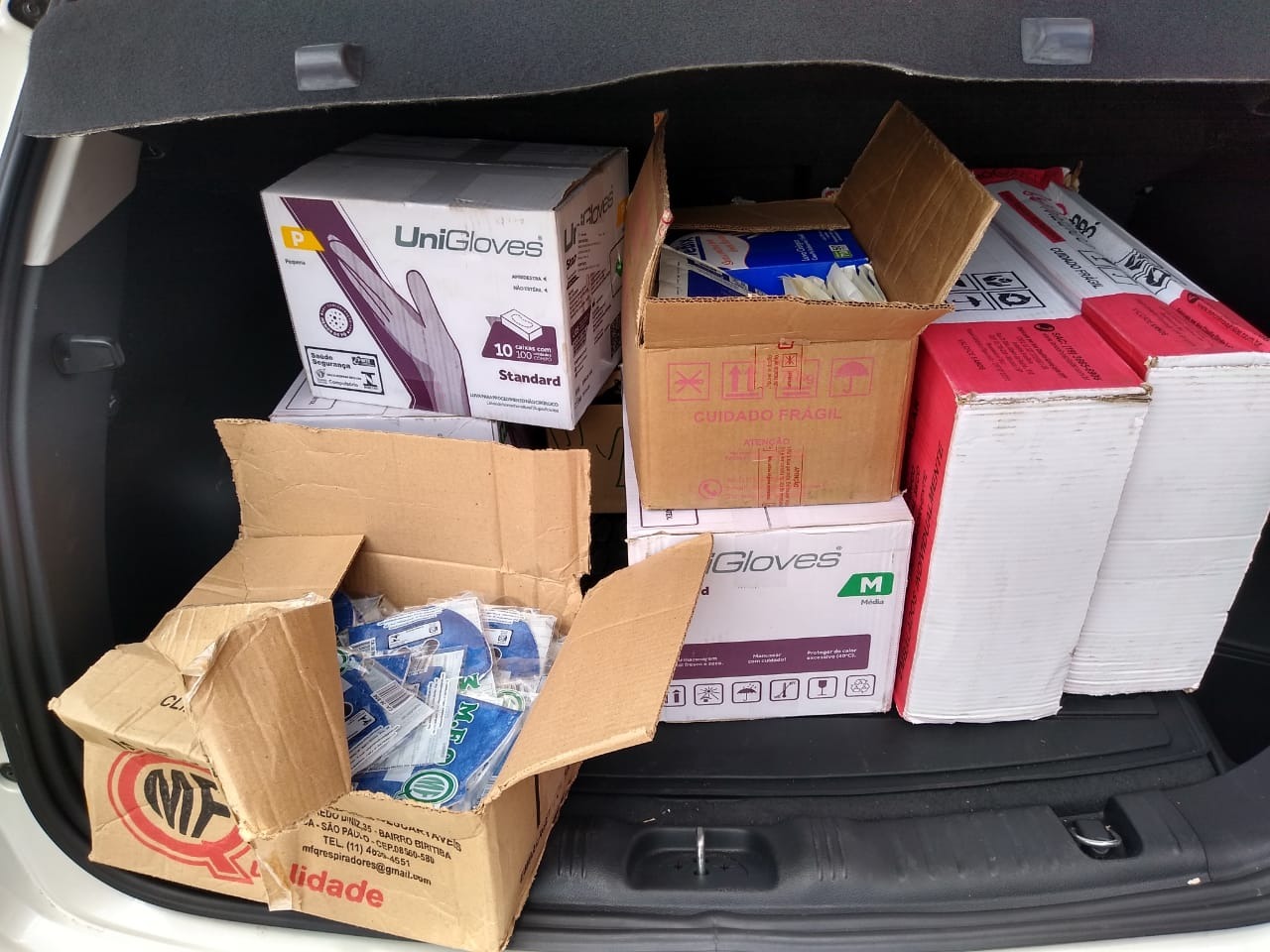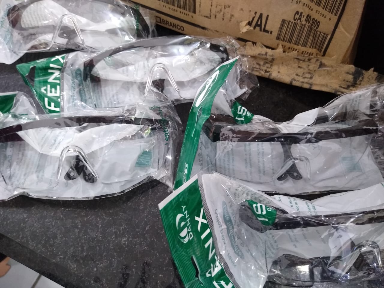 Os primeiros equipamentos foram toucas e máscaras descartáveis, luvas, óculos de proteção e lençóis.