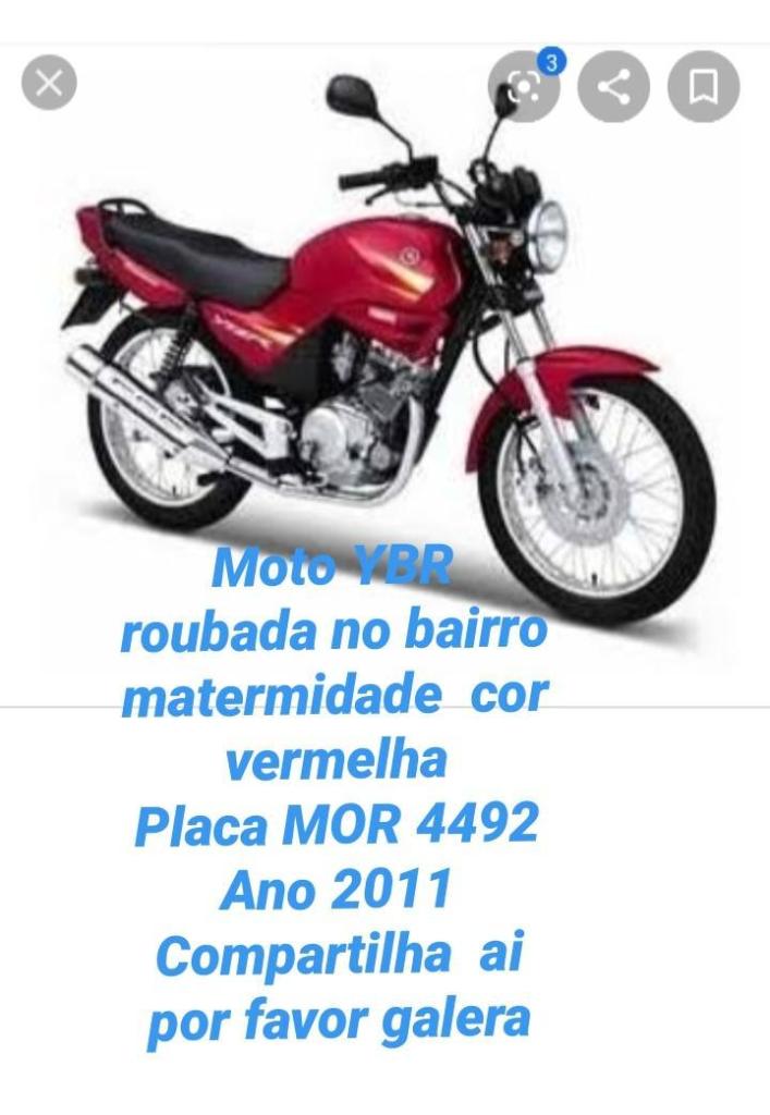 Uma motocicleta, modelo YBR de cor vermelha, foi furtada às 20h30min deste domingo, 22, da calçada de uma residência, na Rua Roque de Sá Magalhães, localizada no bairro da Maternidade, em Patos.