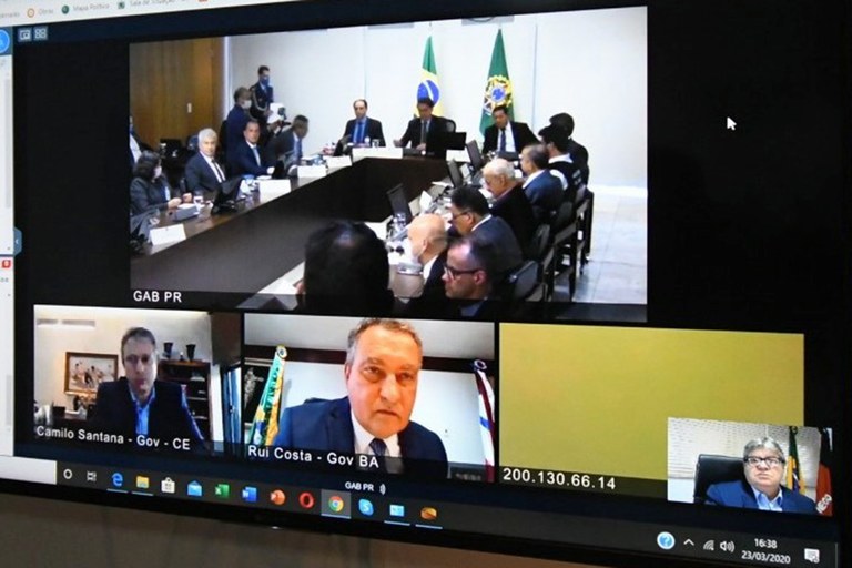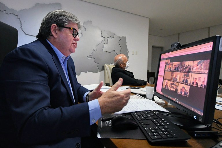 O governador João Azevêdo participou, nesta segunda-feira (23), de videoconferência com o presidente da República Jair Bolsonaro, ocasião em que foram discutidas ações de enfrentamento do coronavírus e apresentadas as respostas do Governo Federal às demandas apresentadas pelo Fórum de Governadores do Brasil.