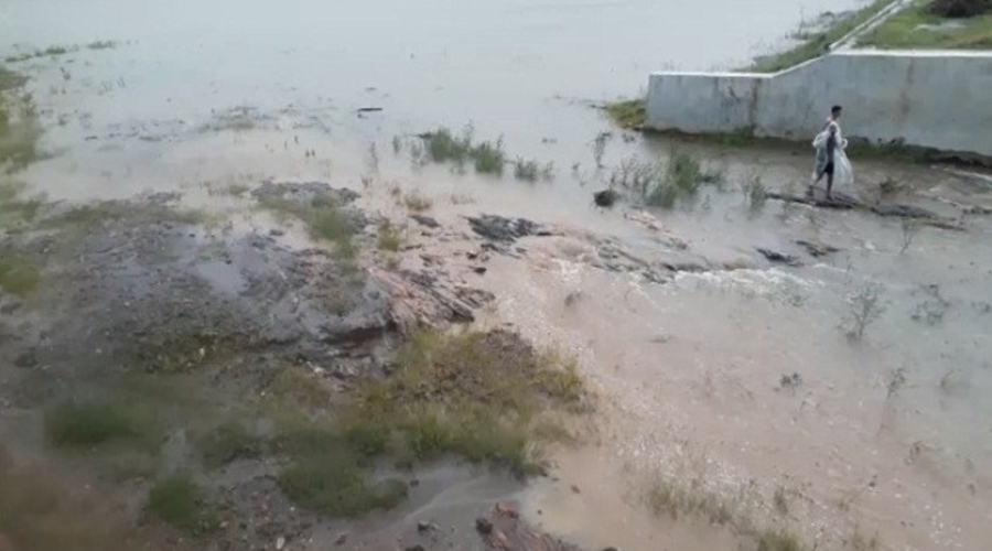 O açude da comunidade sangrou no final da tarde desta quarta-feira, 25, consequências do inverno do ano e das últimas chuvas ocorridas na região.