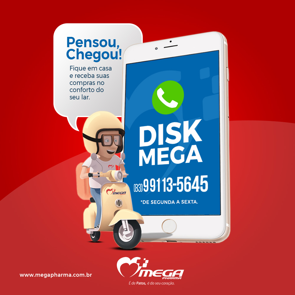 Adquira agora o seu medicamento ou produto com maior comodidade e segurança. É só ligar para o número: (83) 9.9113-5645 e fazer seu pedido, que a Mega Pharma deixa na sua casa.