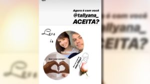O casal namorou por seis meses. O pedido foi aceito na própria rede social. “O não eu já tinha, né? Então fui em busca do sim. A gente se ama, não tinha motivo para adiar [o noivado]”, justificou Tardelly.