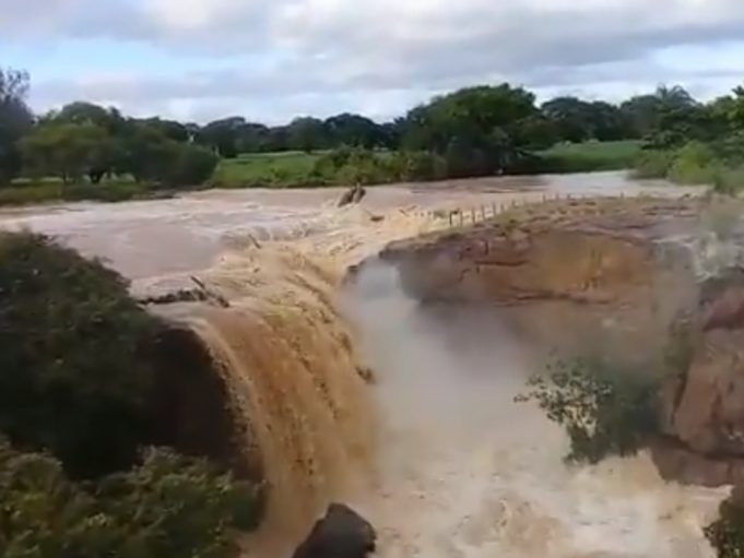 Um dos cartões-postais da região do Cariri, no Ceará, a Cachoeira de Missão Velha, no município homônimo, mudou sua paisagem após as fortes chuvas que caíram na última semana. Formado pela confluência de riachos e rios, o lugar apresenta quedas d’água de aproximadamente 12 metros de altura. O recurso hídrico, que forma o rio Salgado, contribui com o aporte do açude Castanhão, que atualmente está com 9,12% de sua capacidade e é o principal reservatório de abastecimento da capital, Fortaleza.