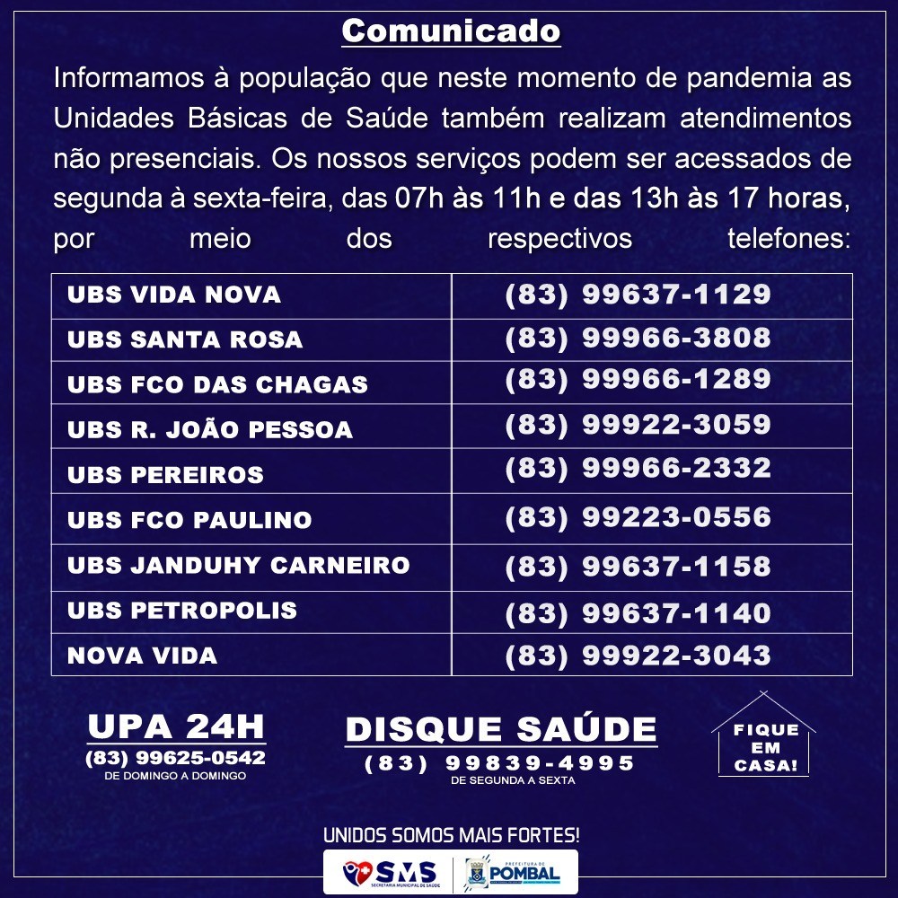 Para ajudar, tirar duvidas e esclarecer a população, a Secretaria de Saúde do município disponibilizou números de telefone da Unidade de Pronto Atendimento (UPA) e das unidades básicas de saúde localizadas nos bairros da cidade (veja lista abaixo).