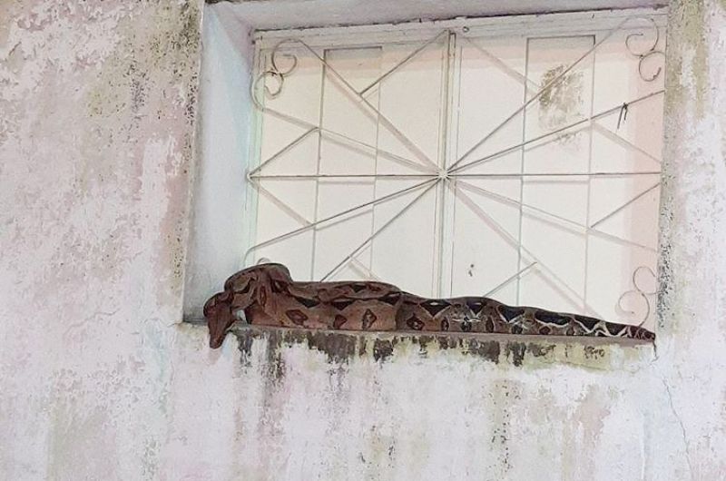 O animal estava em um batente de janela e os moradores não souberam informar como ele conseguiu subir até o local. “É provável que tenha sido por meio das cadeiras que estavam em baixo da janela”, disse o jovem Adalberto Santana, que também ajudou fazer a captura da cobra.