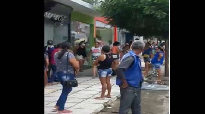 Com a vigência do decreto do governador João Azevêdo (Cidadania), que autorizou o atendimento presencial nas agências bancárias do estado, restringindo ao pagamento de salários, aposentadorias e benefícios do Bolsa Família e aos serviços que não podem ser realizados nos caixas eletrônicos e canais de atendimento remoto, e que as casas lotéricas, devem organizar e priorizar o atendimento para os pagamentos dos beneficiários do Bolsa Família, dezenas de pessoas se aglomeraram na manhã desta segunda-feira (30), nas imediações de uma agência lotérica na cidade de São José de Piranhas, na Região Metropolitana de Cajazeiras.