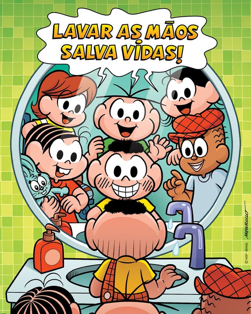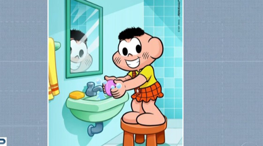 Em uma imagem publicada na página oficial da história em quadrinhos, Mônica, Cebolinha, Magali e outros personagens da famosa turminha colocam Cascão diante de uma torneira e alertam: “Lavar as mãos salva vidas”. Veja vídeo.