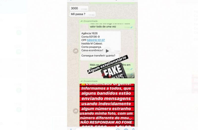 Ailton ainda disse ao DOL que uma amiga dele também teve um WhatsApp criado pelos golpistas.