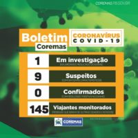 A Secretaria de Saúde de Coremas informa que até esta sexta-feira, 03/04, não existe caso confirmado para o COVID-19 no município.