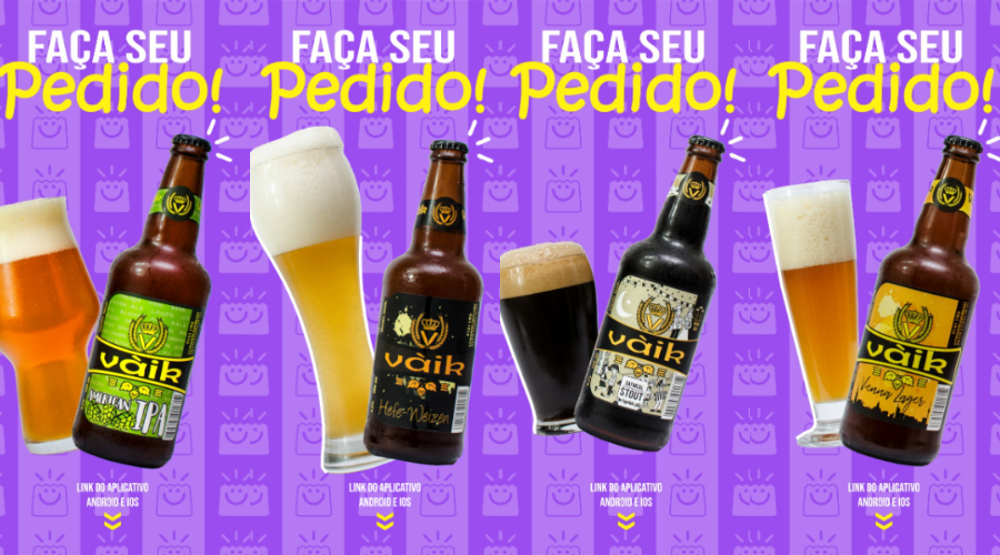 A Vàik está com seus 4 estilos disponíveis Vienna Lager, Hefe-Weizen (de trigo), American IPA e Oatmeal Stout com rapadura preta.