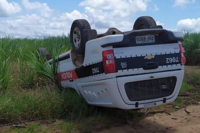 De acordo com informações da Polícia Militar, os policiais estavam averiguando uma atitude suspeita em uma estrada de terra, cujo terreno irregular causou o capotamento.