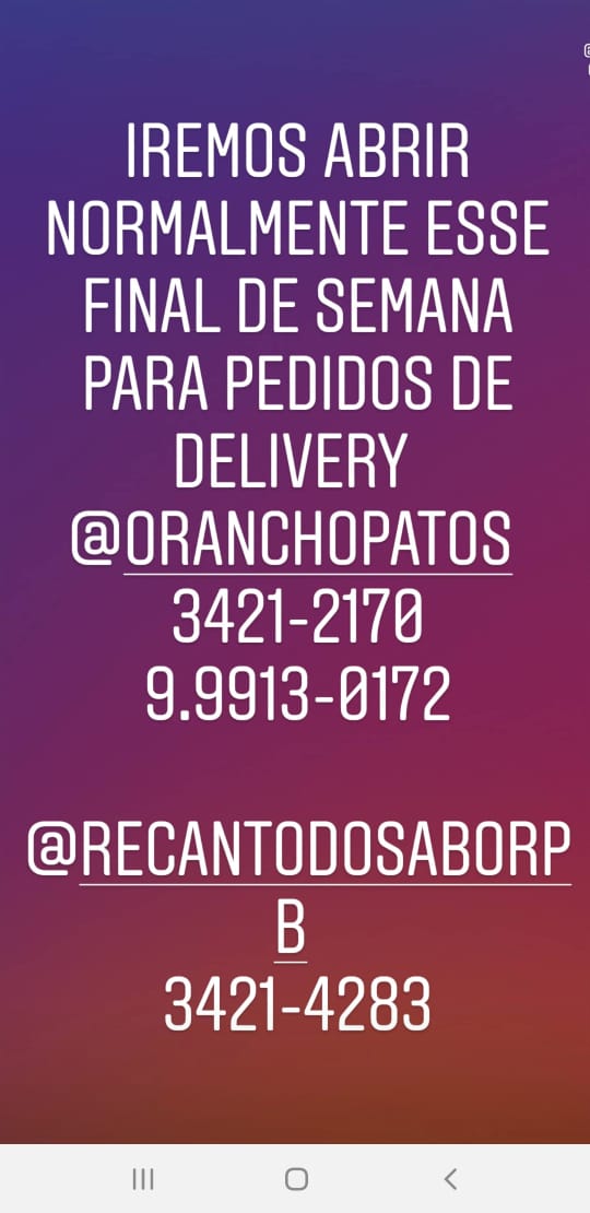 A Churrascaria O Rancho e o Restaurante Recanto do Sabor estão com um eficiente serviço de delivery, em Patos, atendendo toda a cidade nesse dias de isolamento por conta da pandemia de coronavírus.