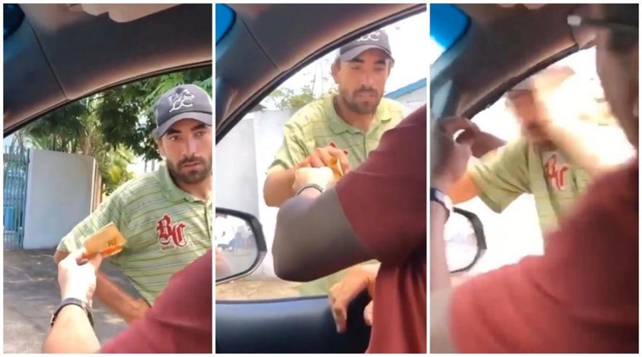 Nas imagens divulgadas nas redes sociais, o passageiro do carro entrega R$ 20 para a vítima. Em seguida, os ocupantes do carro conversam sobre a quantia que ele ganha nas ruas. O homem responde que não consegue comprar comida e não tem recebido ajuda por causa da diminuição do número de pessoas na rua.