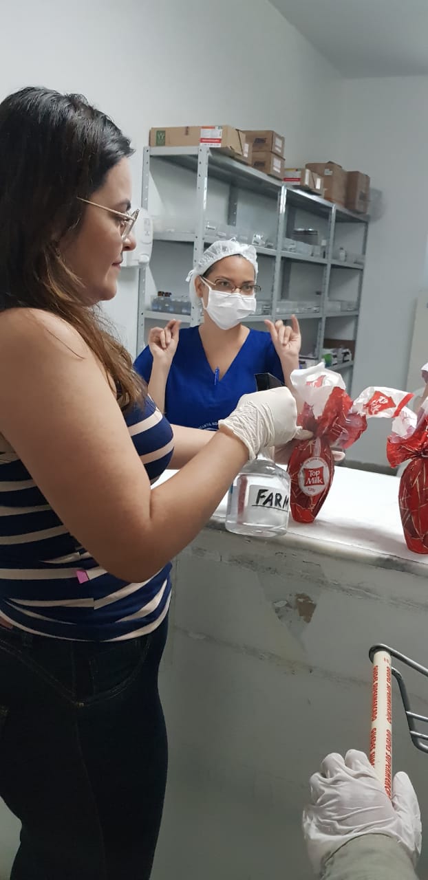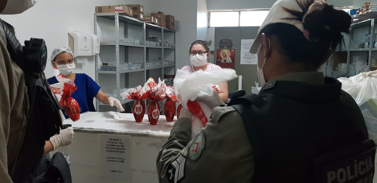 As profissionais do Hospital realizaram todos cuidados de higienização dos ovos de chocolate antes de serem as crianças.