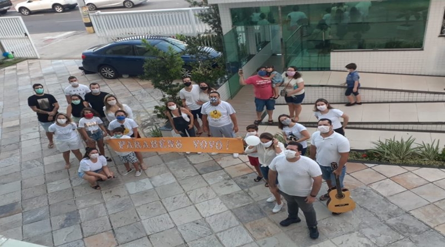 No aniversário de 96 anos, a professora Maria De Lourdes Brasilino ganhou mais uma história emocionante para o seu acervo. Isolada em seu apartamento, em João Pessoa, por conta da pandemia do novo coronavírus, a idosa comemorou nesse domingo (12) seu aniversário com uma homenagem especial. Na varanda de casa, ela foi surpreendida com uma serenata feita por filhos, netos e bisnetos.