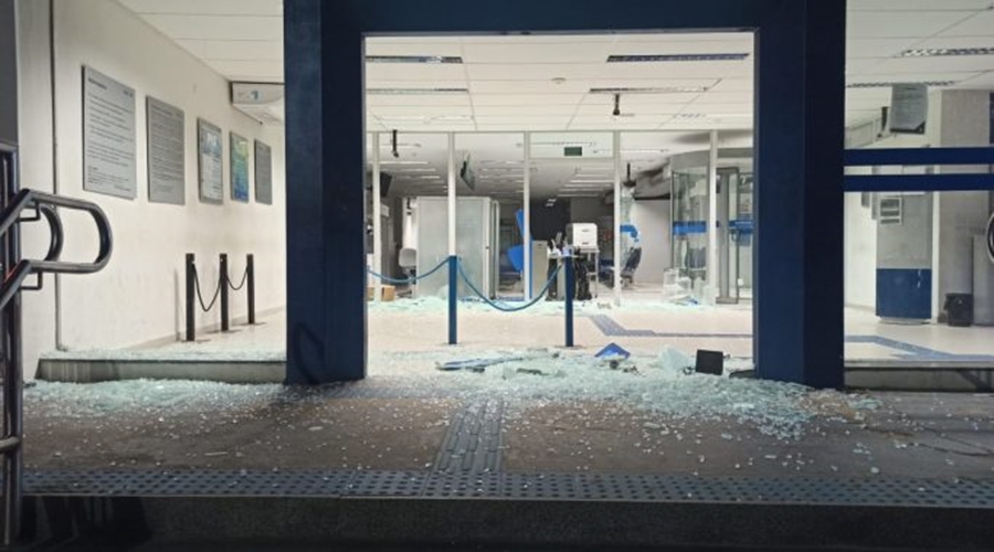 Um motociclista não identificado praticamente destruiu no início da noite o setor de auto-atendimento da agência da Caixa Econômica Federal da Avenida Liberdade, em Bayeux, Região Metropolitana de João Pessoa. Testemunhas disseram que o homem chegou ao local, desceu da moto e passou a atingir as portas de vidro com uma marreta. Outra versão dá conta de que o suspeito usou apenas um capacete.