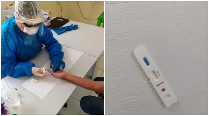 São 8.700 testes rápidos que foram encaminhados pelo Ministério da Saúde para aplicar em profissionais de saúde e segurança que estejam com sintomas a partir do décimo dia, como orienta o Ministério da Saúde.