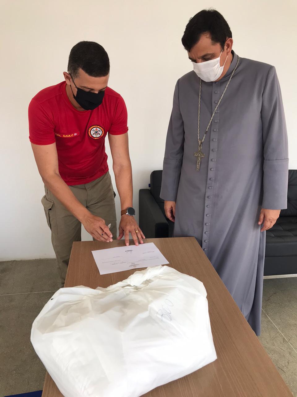 Na ocasião da visita as instalações da sede administrativa e operacional, Dom Eraldo realizou a doação de trezentas (300) máscaras de proteção respiratória para o efetivo que serão utilizadas no enfrentamento às ocorrências de Covid-19.