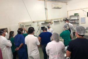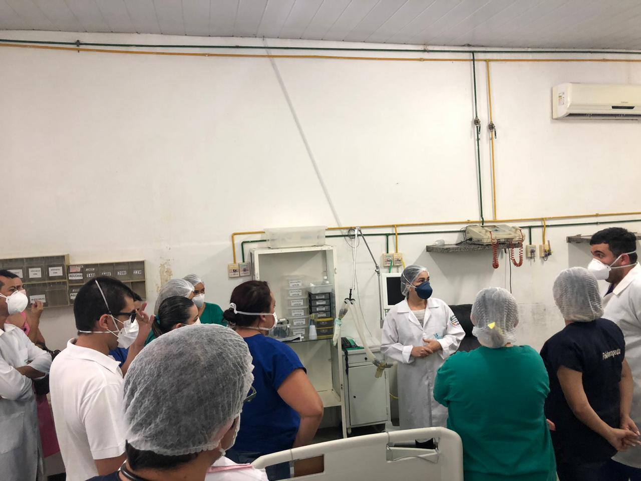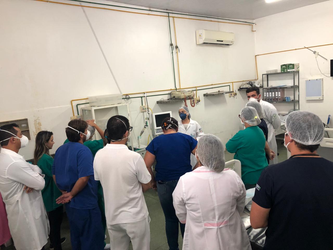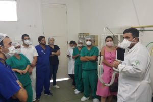 A equipe de fisioterapeutas do Complexo Hospitalar Regional Dep. Janduhy Carneiro de Patos (CHRDJC) passou por um treinamento, na tarde desta sexta-feira (17), para padronizar algumas condutas que asseguram maior segurança no atendimento aos pacientes com Covid-19. A capacitação foi feita pelos professores da Unifip, Célio Diniz e Rayne Torres, que também integram a equipe da unidade. Profissionais que atuam na UPA também participaram do momento, realizado na área de AVC do hospital.