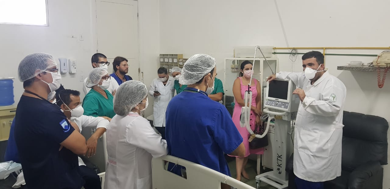 Antigos e novatos fisioterapeutas participaram da capacitação que abordou questões como oxigenoterapia e ventilação mecânica, transporte do paciente em ventilação mecânica interno para exames, manobra de reanimação cardiopulmonar no paciente em ventilação mecânica com Covid-19, entre outros tópicos.
